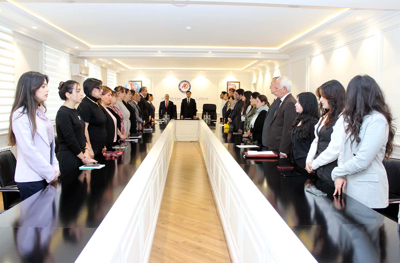 Əvvəlcə universitetin foyesində Ümummilli Lider Heydər Əliyevin büstü önünə gül dəstələri qoyulub, Ulu Öndərin xatirəsi ehtiramla yad edilib. Daha sonra tədbir Azərbaycan Respublikasının Dövlət Himninin səsləndirilməsi və Vətən müharibəsi şəhidlərinin əziz xatirəsinin bir dəqiqəlik sükutla yad edilməsi ilə başlanıb.