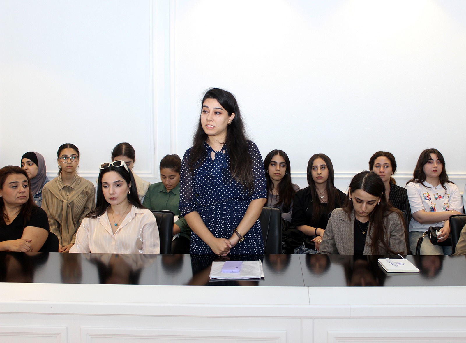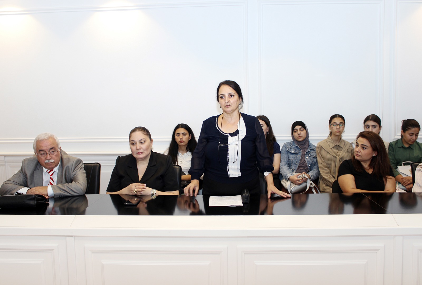 Daha sonra universitet əməkdaşları və tələbələrinin çıxışları dinlənilib. İsmayılova Aygün “Qanla yazılan tarix, yaddaşımızda yaşayan igidlər” mövzusunda çıxış edərək Azərbaycan xalqının hər bir mühüm tarixi hadisəsinin şəhidlərimizin fədakarlığı ilə bağlı olduğunu qeyd edib. Miriyəva Aygün “27 Sentyabr – Qürur və Yaddaş Günü” mövzusunda çıxışında bu günün yalnız keçmişin xatırlanması deyil, həm də gələcəyə inamın ifadəsi olduğunu vurğulayıb. Adıgözəlova Məleykə isə “27 Sentyabr: Tarixi ədalətin bərpasına gedən yol” mövzusunda çıxış edərək 44 günlük müharibənin uzun illər davam edən işğala qarşı aparılan ədalətli mübarizənin tarixi yekunu olduğunu diqqətə çatdırıb.
