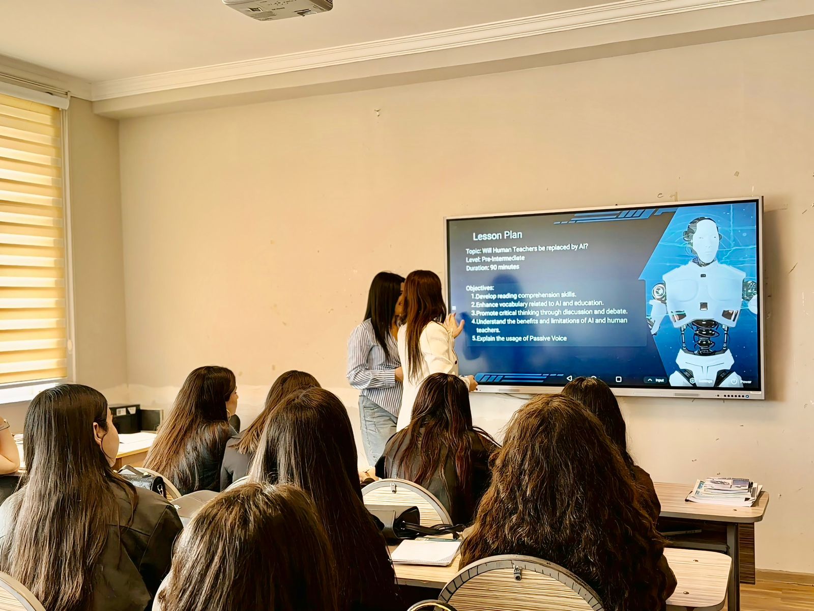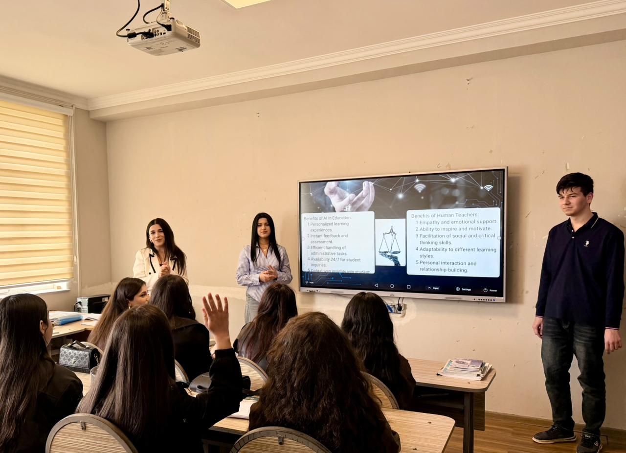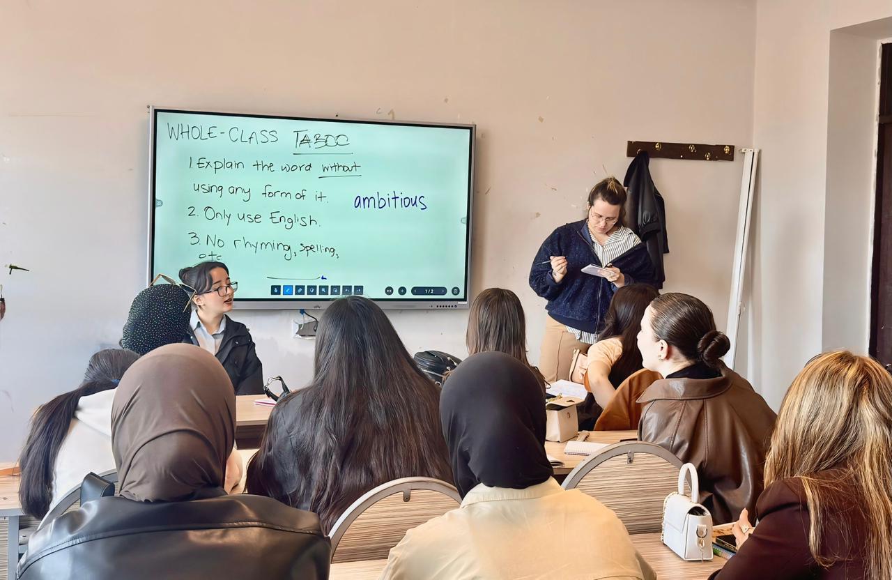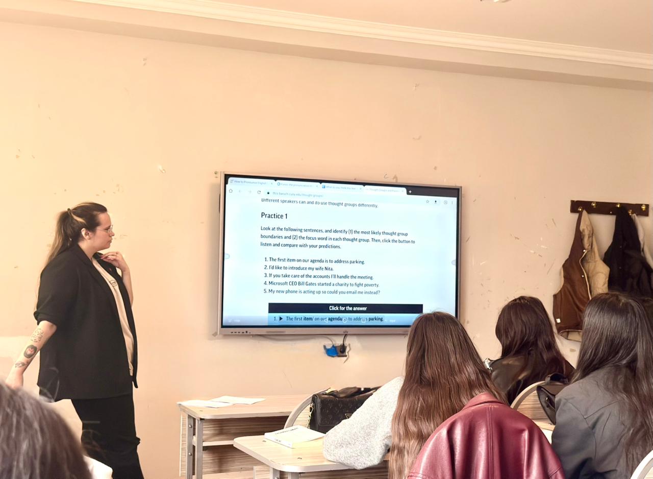 Sözügedən proqram çərçivəsində BAAU-nun Keyfiyyət təminatı sektorunun müdiri, eyni zamanda Filologiya fakültəsinin Tərcümə kafedrasının baş müəllimi Esmira Talıbova amerikalı müəllim xanım Jordan Brown ilə birlikdə yaz semestrinin əvvəlindən etibarən tələbələrə müasir və innovativ tədris modeli əsasında dərs keçir.