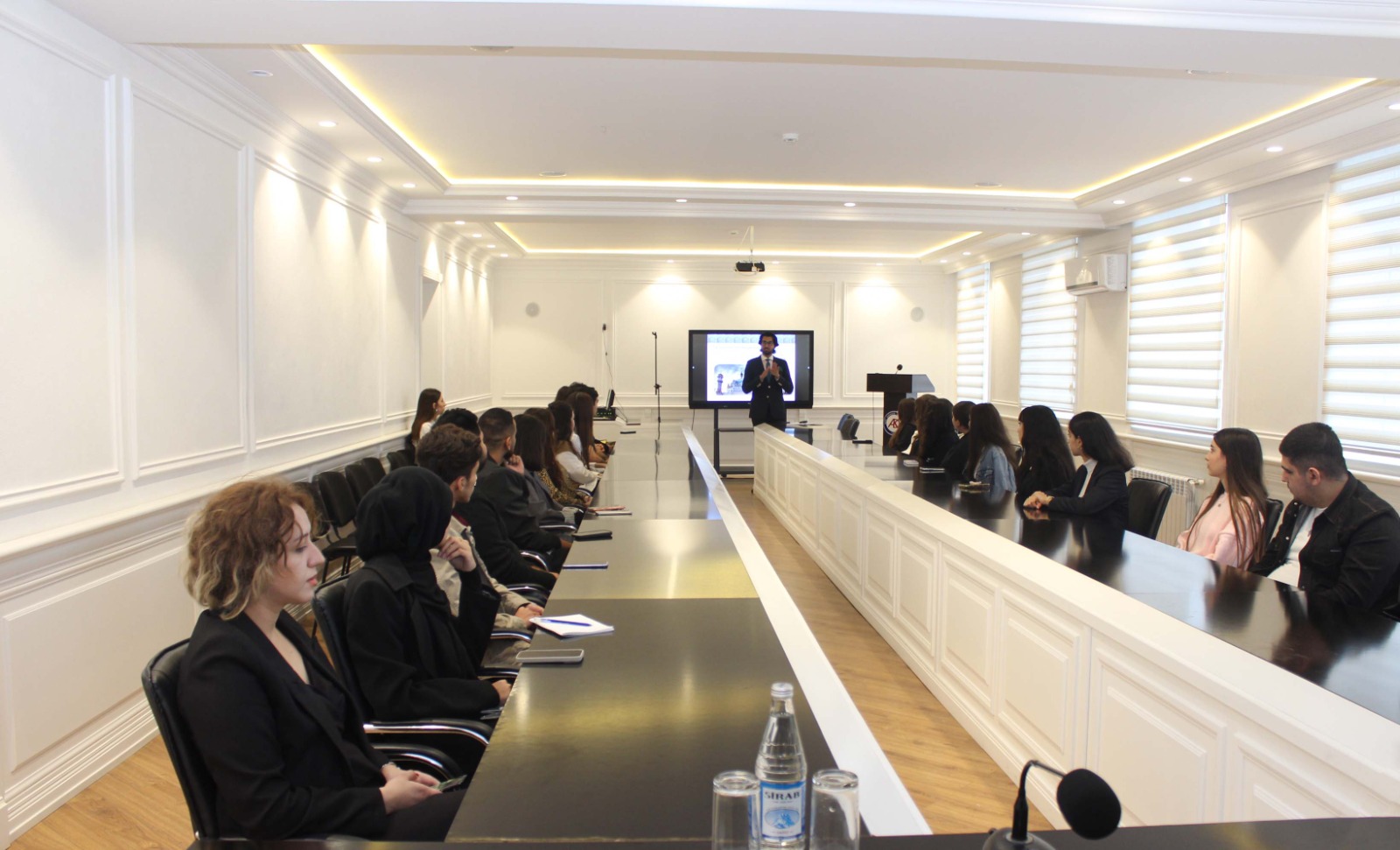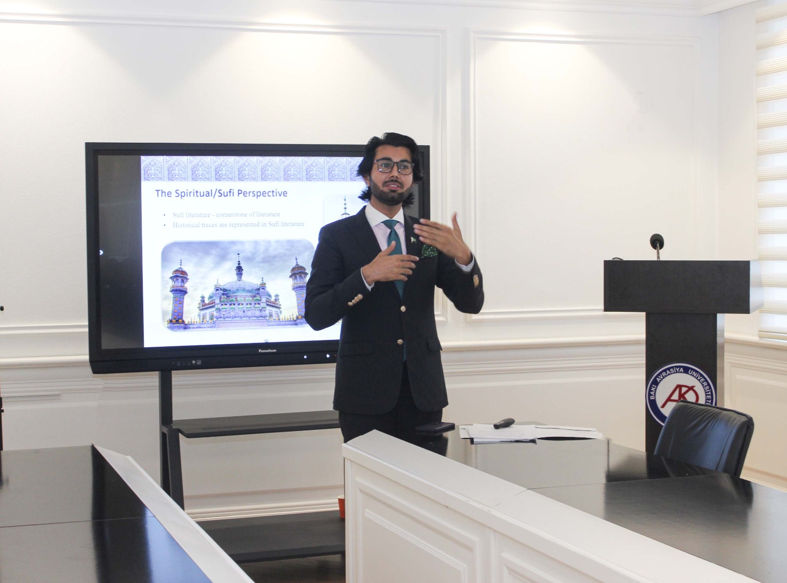 Daha sonra MUSLIM İnstitutunun ictimaiyyətlə əlaqələr üzrə nümayəndəsi Asif Tanveer Awan tələbələr qarşısında “Pakistan-Azərbaycan mədəni əlaqələri” mövzusunda çıxış edib. O, iki ölkə arasında ortaq tarixi və mədəni dəyərlərdən, həmçinin təhsil və gənclər sahəsində əməkdaşlıq perspektivlərindən bəhs edib.