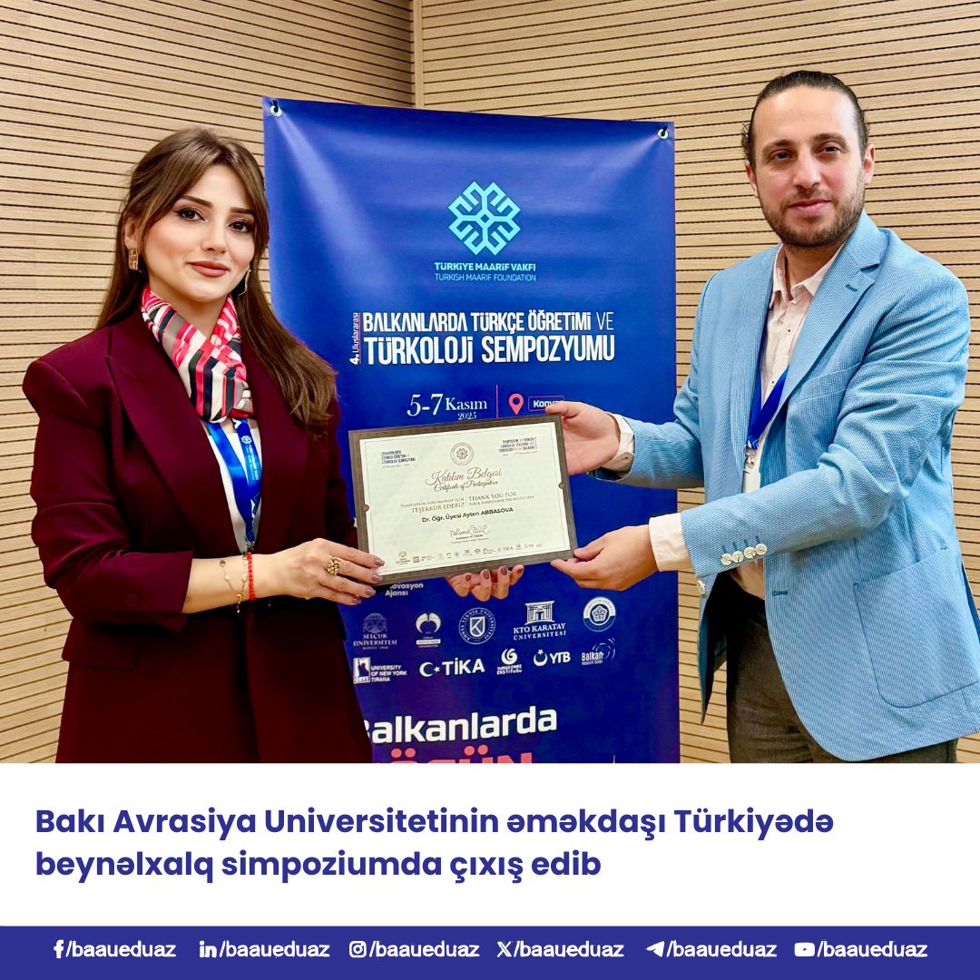Bakı Avrasiya Universitetinin (BAAU) Azərbaycan və dünya ədəbiyyatı kafedrasının baş müəllimi, f.ü.f.d. Aytən Abbasova Türkiyənin Konya şəhərində IV “Balkanlarda Türkcənin Tədrisi və Türkologiya Simpoziumu – Köçün İzləri” adlı beynəlxalq simpoziumda iştirak edib.