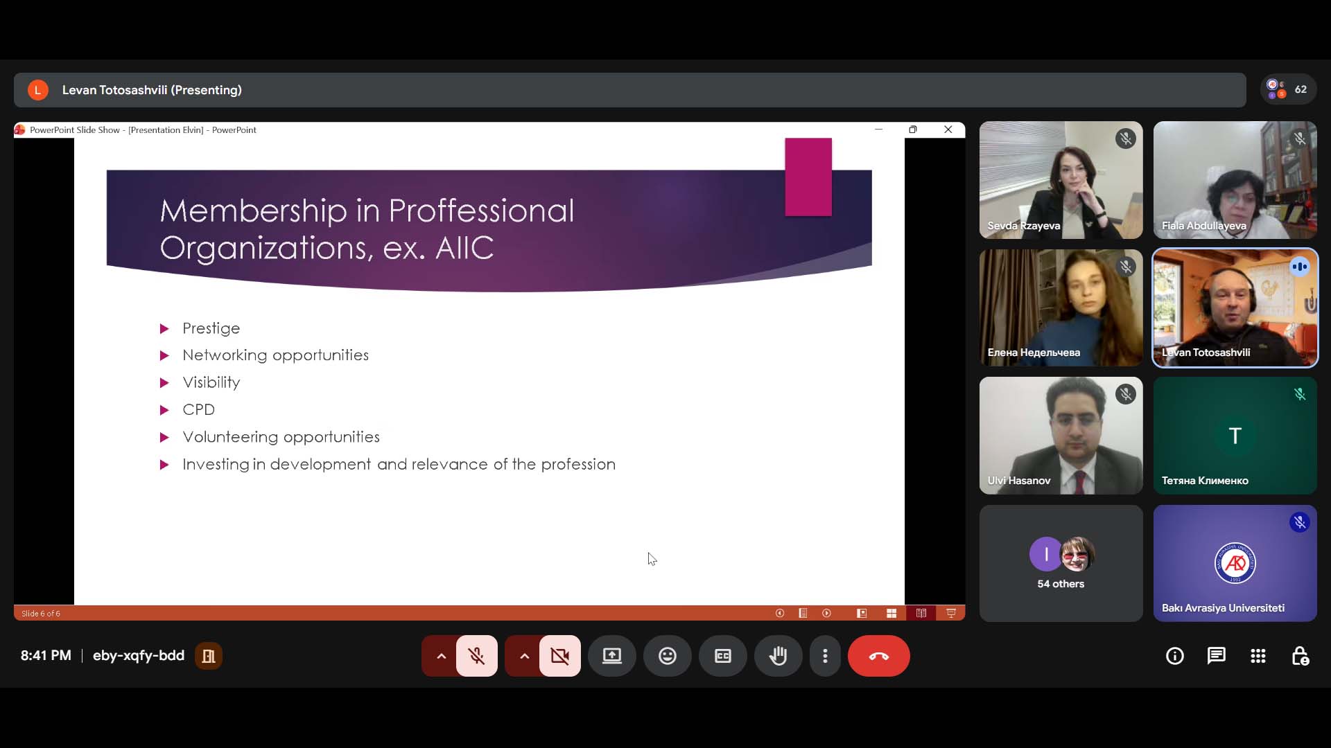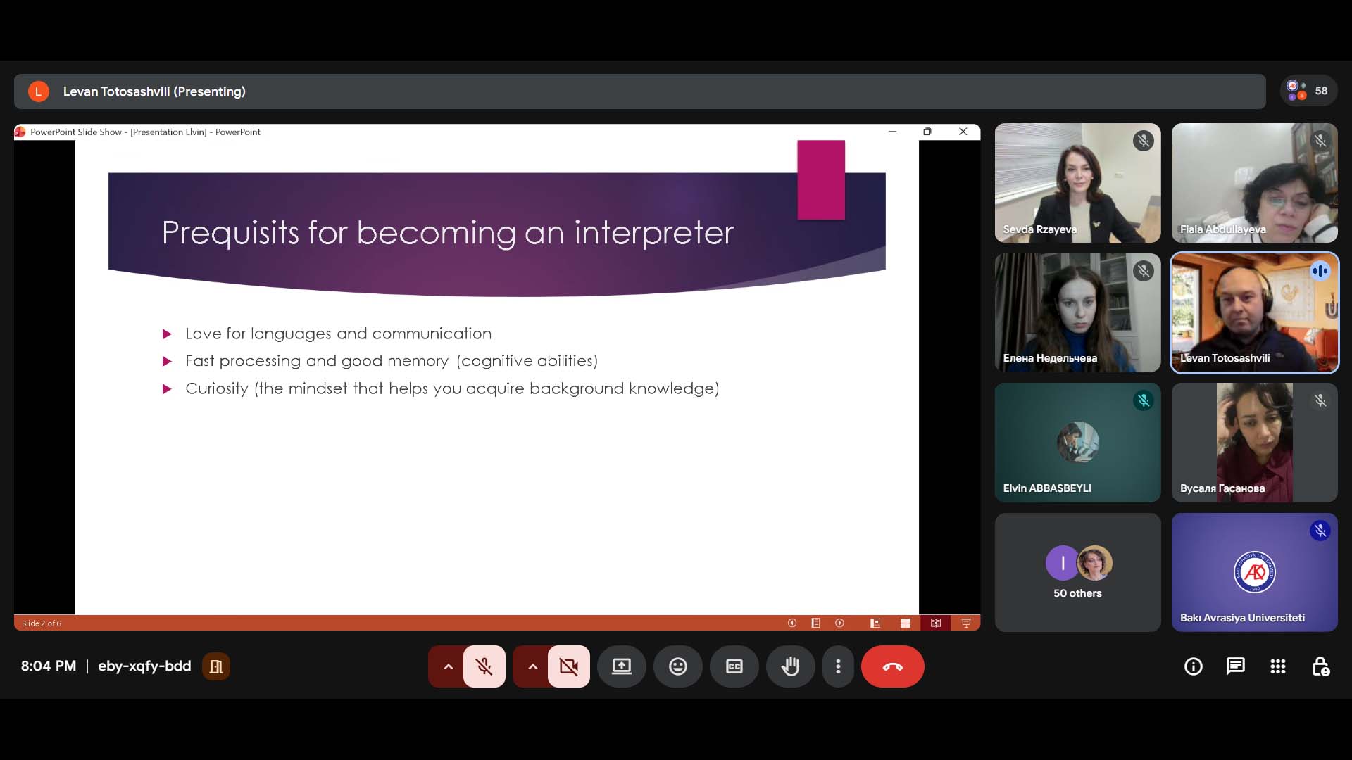 Vebinarın əsas qonağı konfrans tərcüməçisi, AIIC (Konfrans Tərcüməçilərinin Beynəlxalq Assosiasiyası) üzvü, spiker Levan Totosashvili olub. Qonaq çıxışında Avropada və digər ölkələrdə şifahi tərcümə fəaliyyətinin əsas prinsipləri, peşə etikası, davamlı peşəkar inkişaf mexanizmləri və akkreditasiya prosedurları haqqında ətraflı məlumat verib.